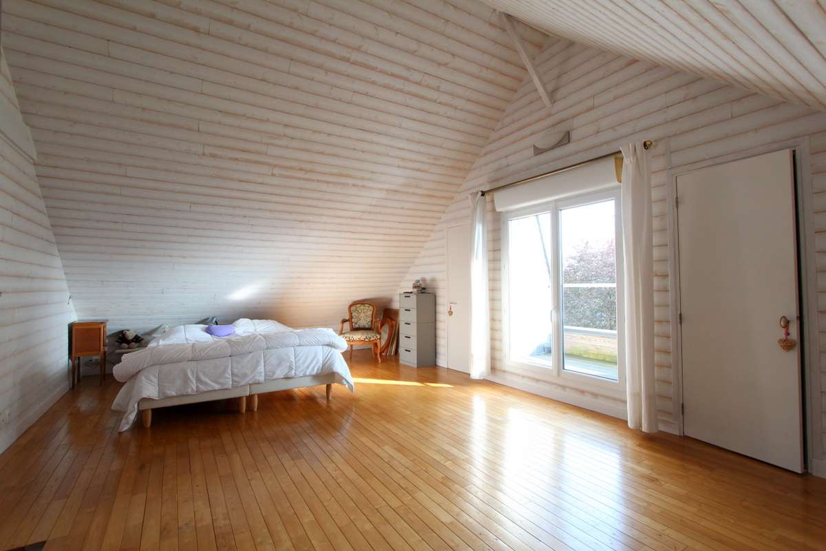 Suite parentale comprenant chambre (avec fenêtre sur le jardin), dressing, salle d’eau avec douche et WC.