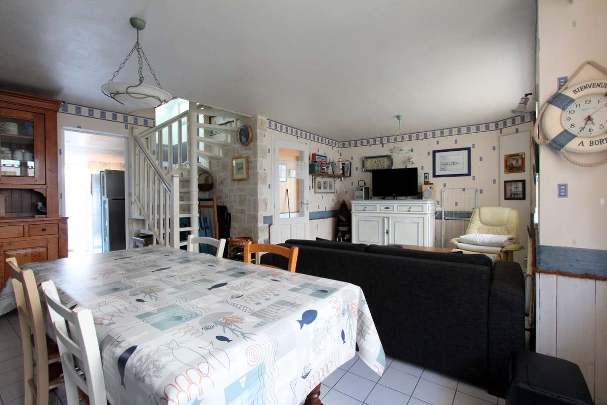 Rez-de chaussée avec pièce de vie, cuisine, salle de bains et WC.