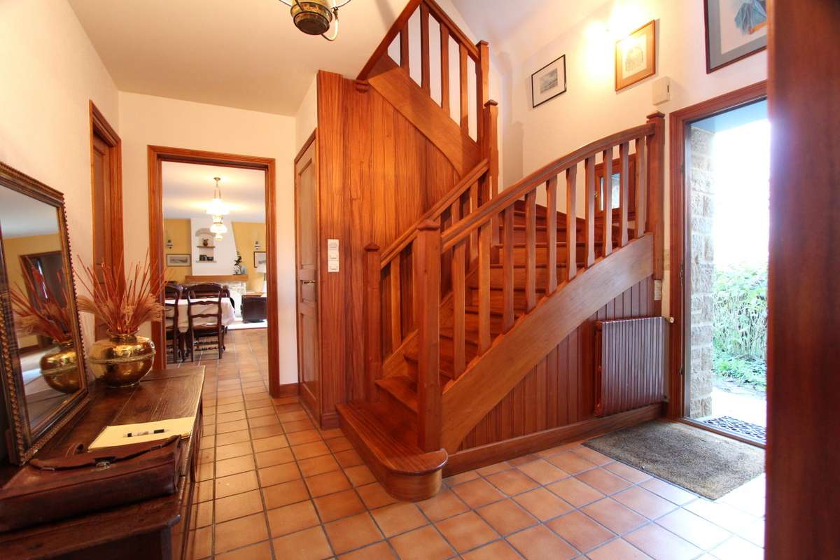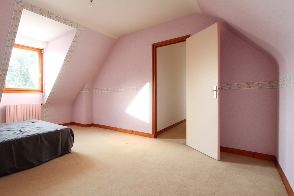 Au rez-de-chaussée : entrée, cuisine, salle d’eau, chambre, WC, salon 45m², bureau.