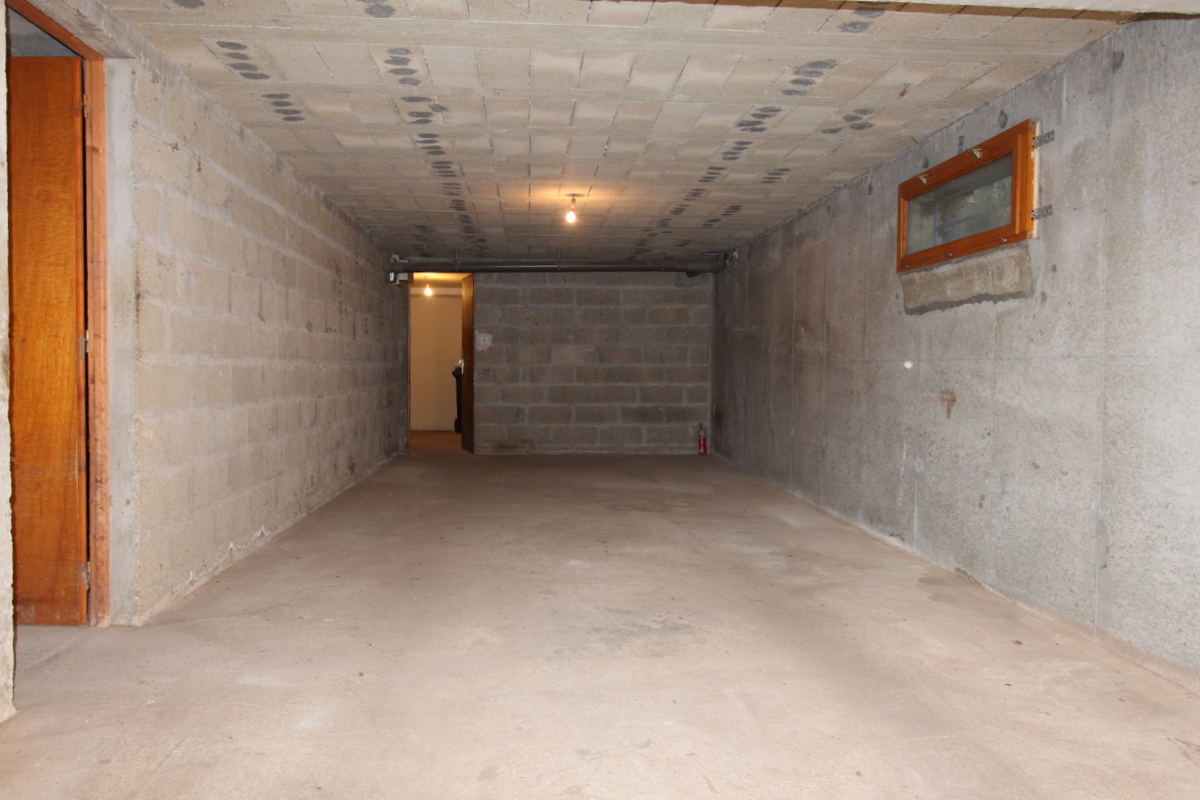 Sous-sol de 95m² avec un garage de 34m², chaufferie, atelier, buanderie, cave et de nombreux rangements.
